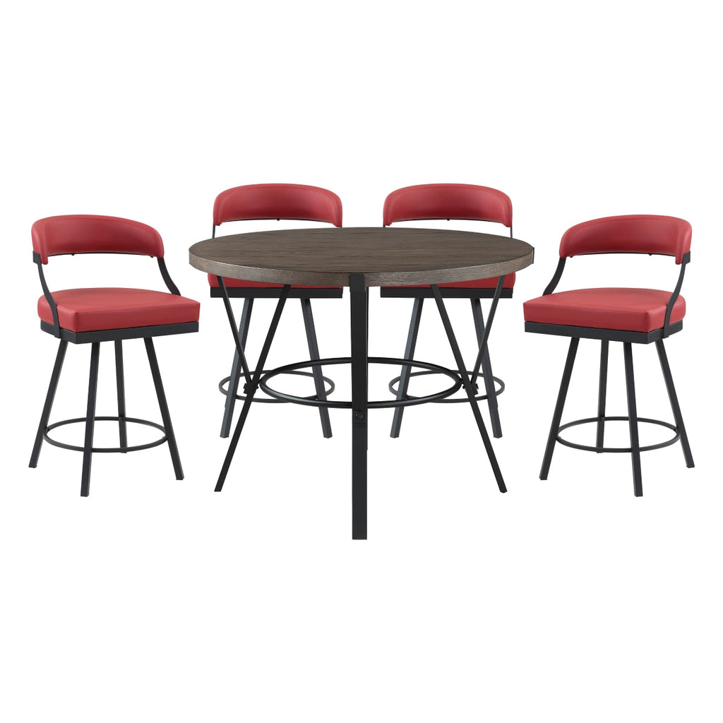 Designed for your home’s modern aesthetic, the Oxton Collection provides an ample platform for your mealtime and social activities. The oak veneer of the round counter height tabletop has a brown finish complemented by the black metal base. The 24-inch height chairs feature black metal framing and black faux leather-covered seats.