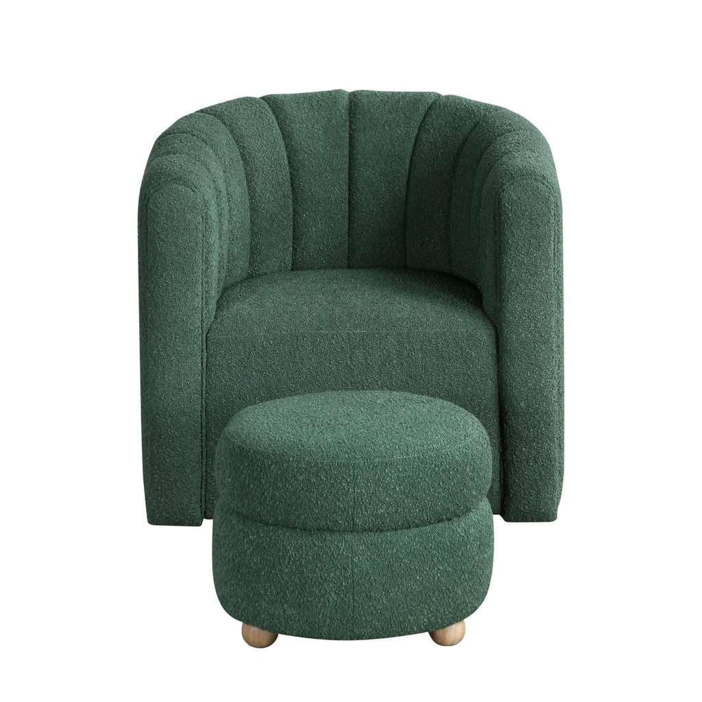 Elevate your relaxation space with this contemporary barrel chair and matching ottoman, featuring a chic channel-tufted design that blends modern style with plush comfort. Wrapped in soft, textured upholstery and built on a sturdy frame, this cozy set is perfect for curling up with a good book, enjoying conversation with friends, or simply unwinding at the end of the day. Its gently curved back and cushioned seat provide ergonomic support, while the coordinating ottoman lets you stretch out in ultimate comfort. Whether placed in your living room, bedroom, or home office, this statement piece effortlessly enhances any décor with its refined silhouette and inviting feel.