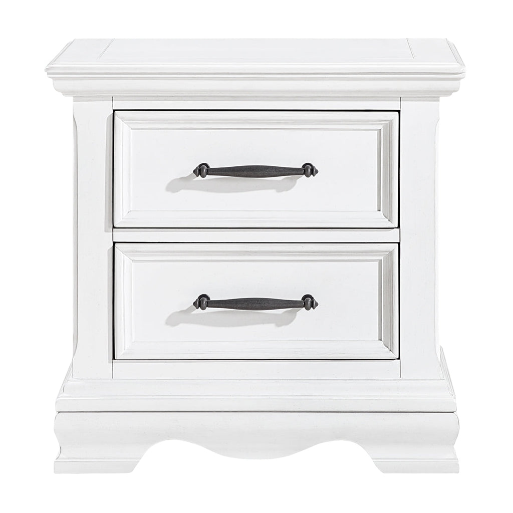Add a touch of timeless elegance and practical storage to your bedside with this charming White Wood 2-Drawer Nightstand. Crafted from a durable blend of wood and engineered wood, this nightstand boasts a beautiful, crisp white finish that brightens any bedroom décor. Featuring two spacious dovetail drawers, each equipped with smooth ball-bearing glides, it offers effortless access to your essentials, while the stylish black nickel-tone bar pulls provide a striking contrast. Perfect for keeping your nighttime necessities organized and within reach, this classic bedside table combines refined aesthetics with reliable functionality.